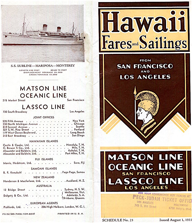 Hawaii Transport Los Angeles Steamship Co Brochure Cruises 1930-1 Front