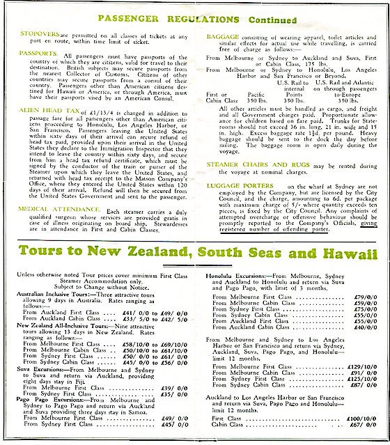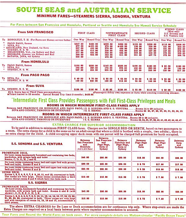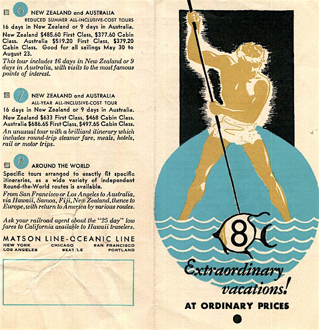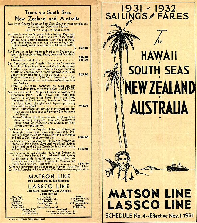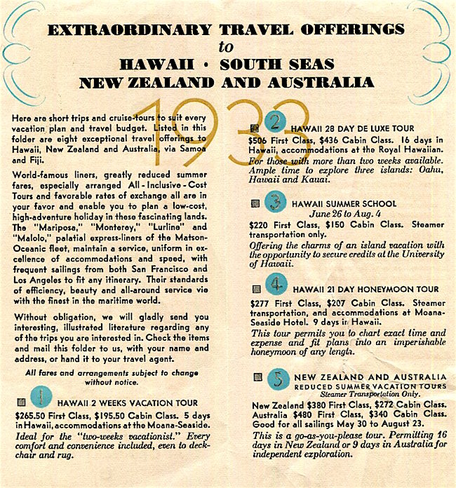 Hawaii Transport Matson Line Brochure 1930 Back