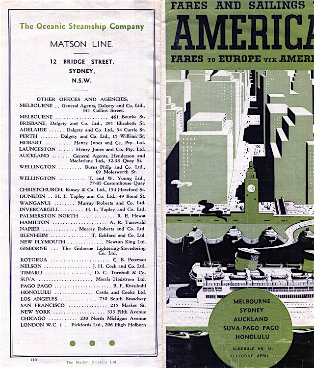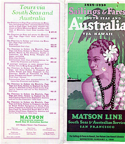 Hawaii Transport Matson Line Brochure Australia 1929 Back