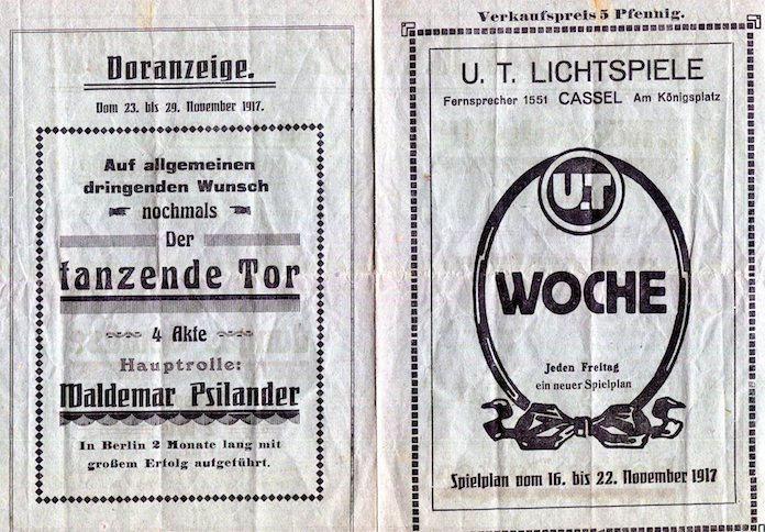 Germany Cassel Entertainment Cinema U T Lichtspiele Program 1917 Front