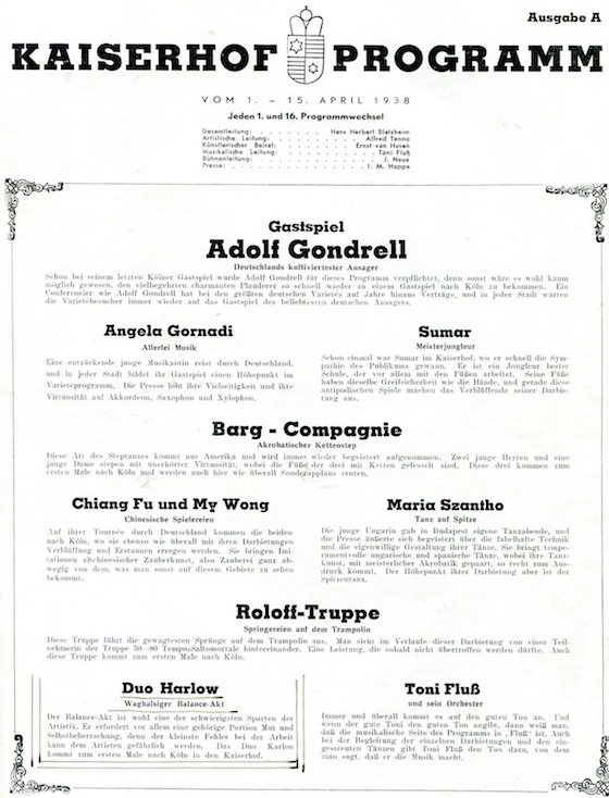 Germany Entertainment Cologne Blatzheim Betreibe Program 1938 Inside 1