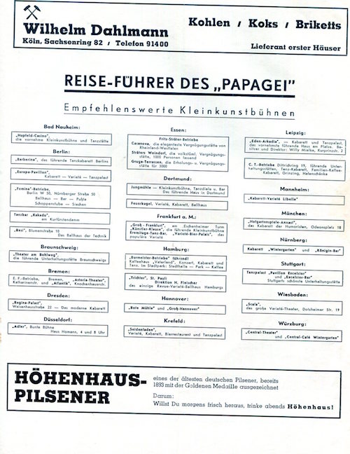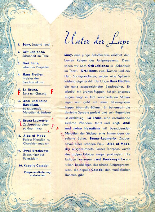 Germany Entertainment Cologne Apollo Theater Program 1940 Inside 2
