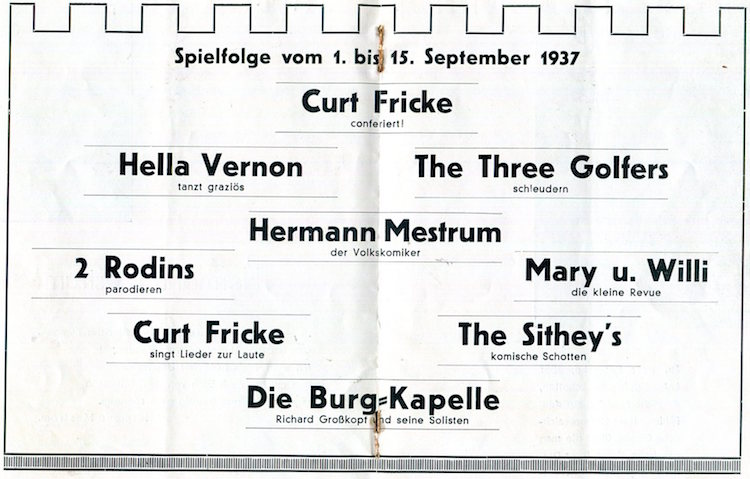 Germany Entertainment Cologne Blatzheim Betreibe Program 1938 Inside 2