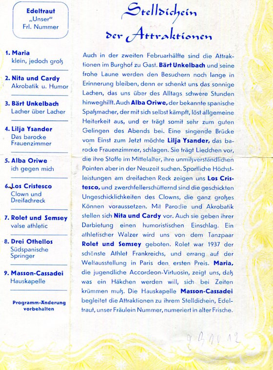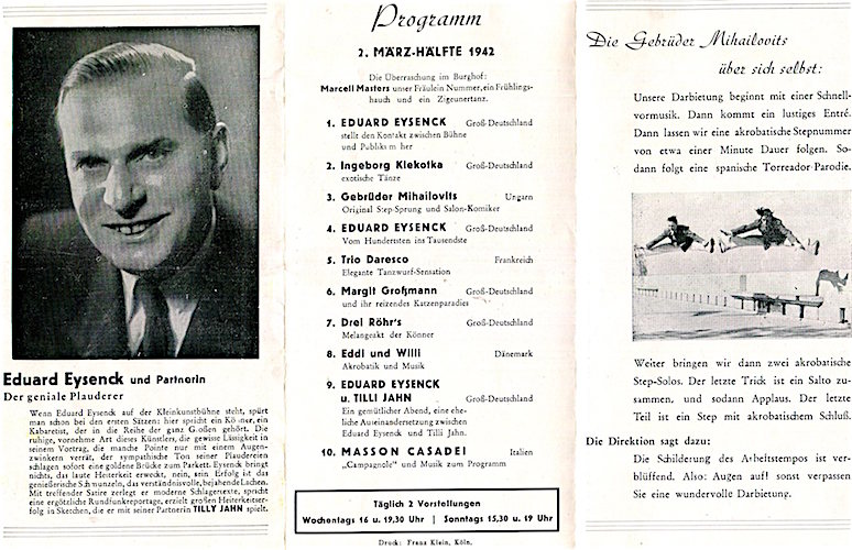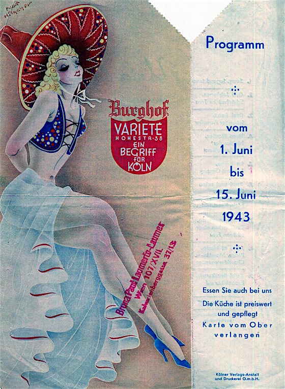 Germany Entertainment Cologne Burghof Variete Program 1943-1