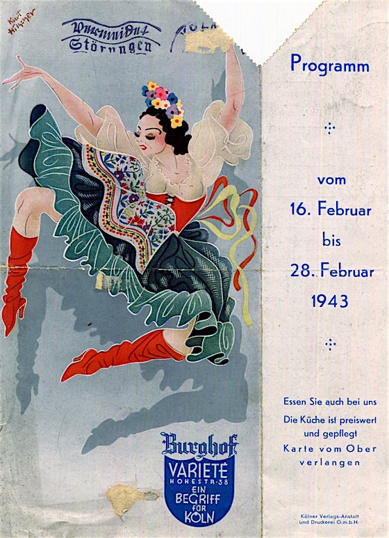 Germany Entertainment Cologne Burghof Variete Program 1943-3 Front