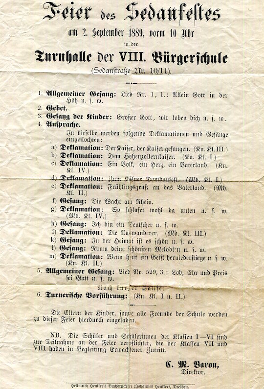 Germany Entertainment Dresden Bürgerschule Turnhalle Concert Program 1889