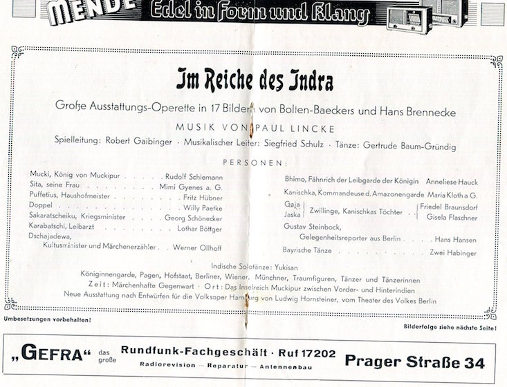 Germany Entertainment Dresden Central Theater Program Im Reich Des Indra 1940 Inside 1