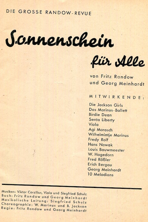 Germany Entertainment Dresden Central Theater Program Sonnenschein Für Alle 1937 Inside