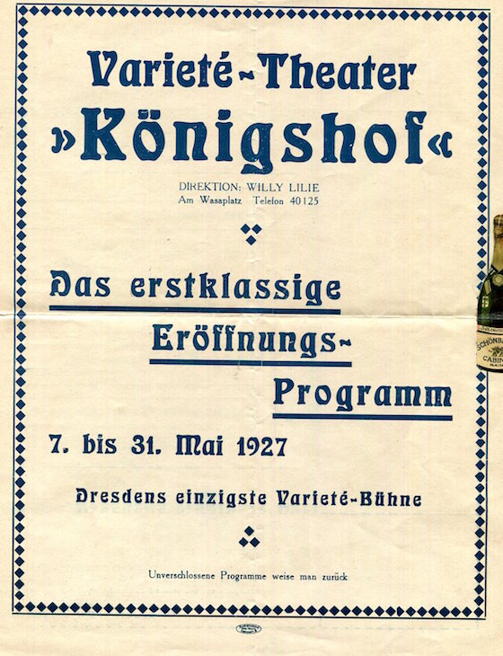 Germany Entertainment Dresden Königshof Variete Theater Program 1927 Front