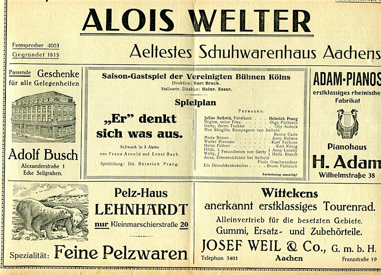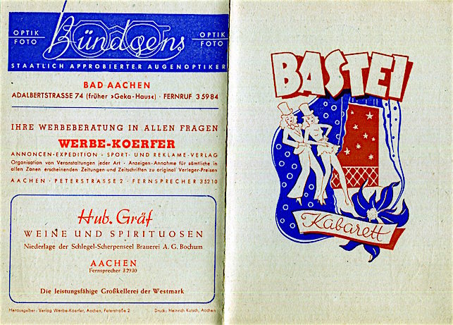 Germany Entertainment Aachen Bastei Program 1943 Front