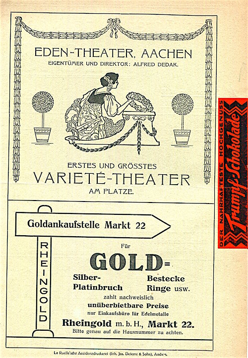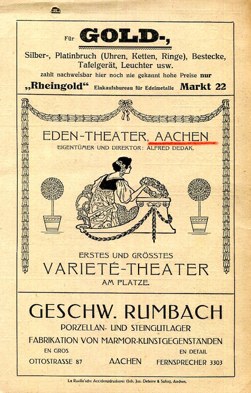 Germany Entertainment Aachen Eden Theater Program 1922-2 Front