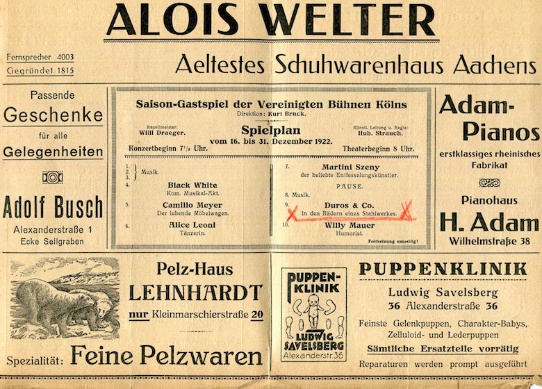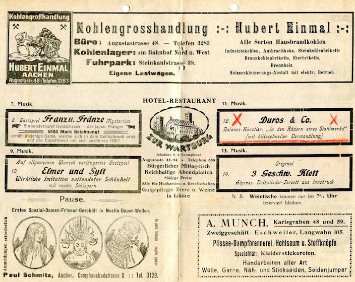 Germany Entertainment Aachen Wintergarten Program 1922 Inside 1