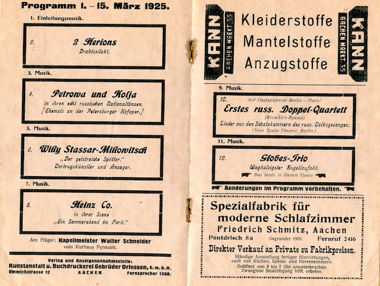 Germany Entertainment Aachen Wintergarten Program 1925 Inside 1