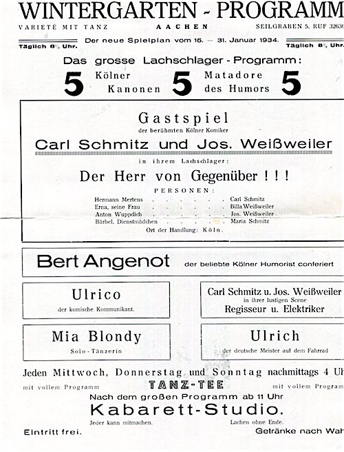 Germany Entertainment Aachen Wintergarten Variete Program 1934