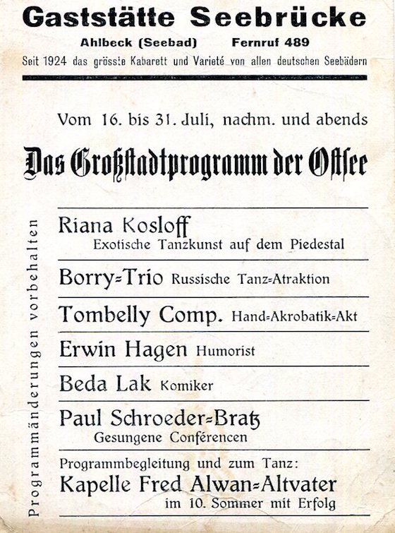 Germany Entertainment Ahlbeck Variete Seebrucke Program 1924