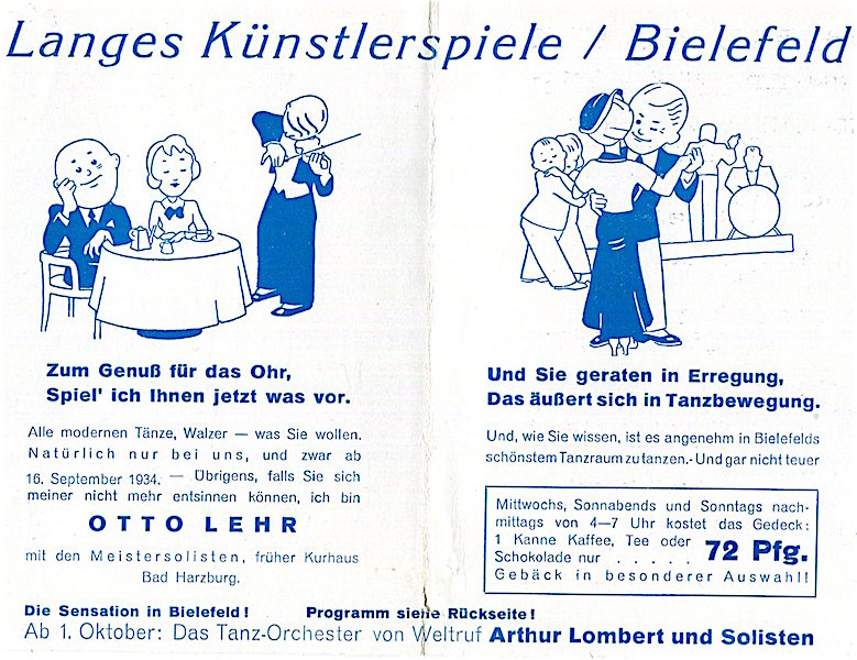 Germany Entertainment Bielefeld Langes Kunstlerspiele Program 1934 Back