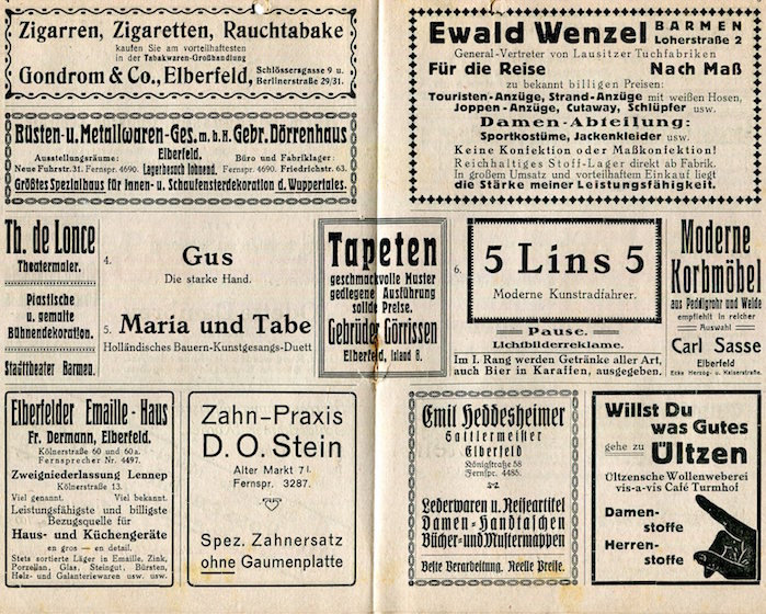 Germany Entertainment Elberfeld Thalia Theater Program 1910 Inside 3