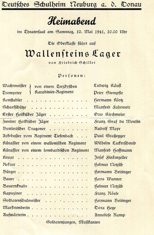 Germany Entertainment Neuburg Deutsches Schulheim Program 1941