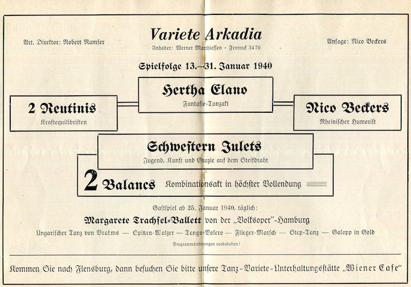 Germany Entertainment Neumunster Arkadia Variete Program 1940-2 Front