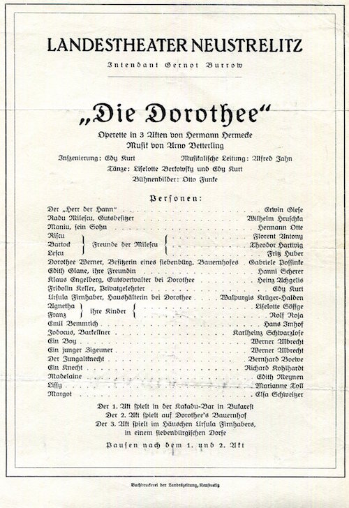 Germany Entertainment Neustrelitz Landestheater Program 1939-1940