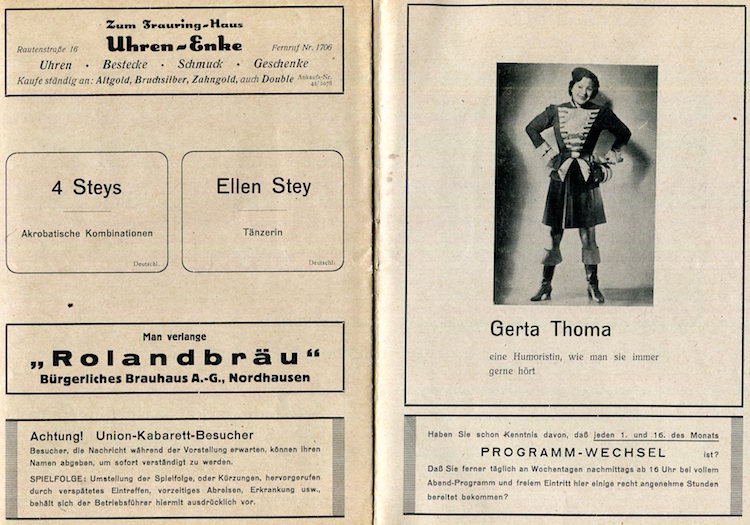 Germany Entertainment Nordhausen Union Kabarett Program 1941 Front