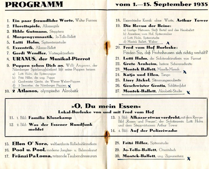 Germany Essen Entertainment Anton Linders Publicity Leafelt 1935 Inside