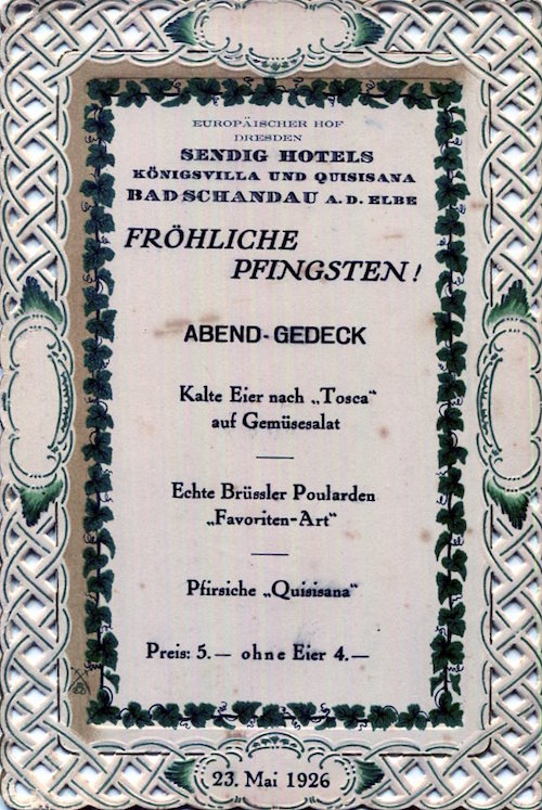 Germany Bad Schandau Königsvilla Und Quisisana Hotel Menu 1926-2