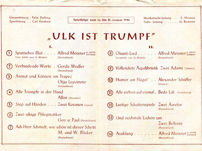 Germany KDF Entertainment Berlin Werner Kroll Program 1942 Front
