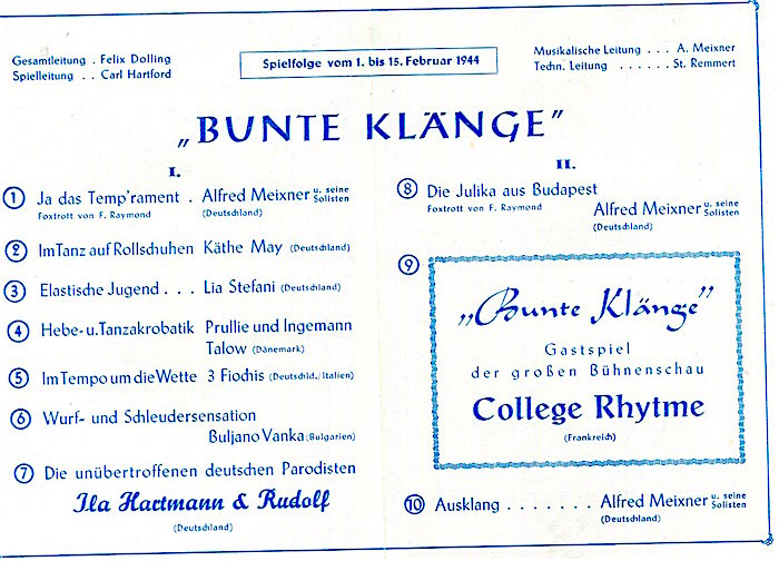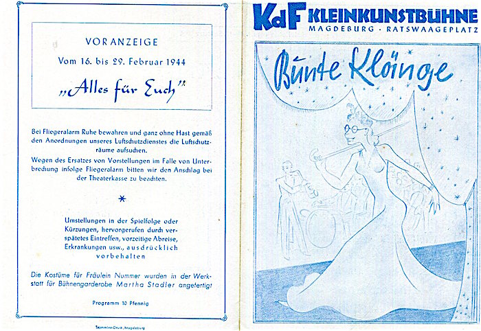 Germany KDF Entertainment Magdeburg Kleinkunstbühne Program 1944-2 Front