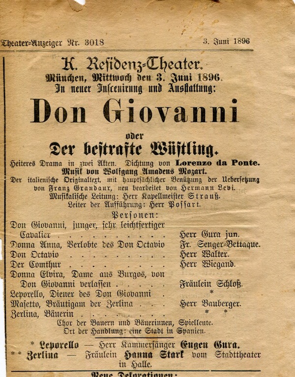 Germany Entertainment Munich Ad Residenztheater Don Giovanni 1896