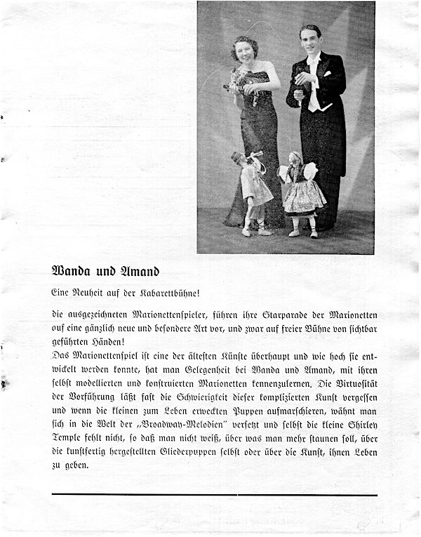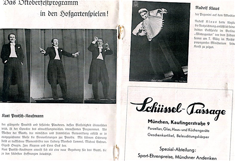 Germany Entertainment Munich Artisten Brochure 1938 Inside