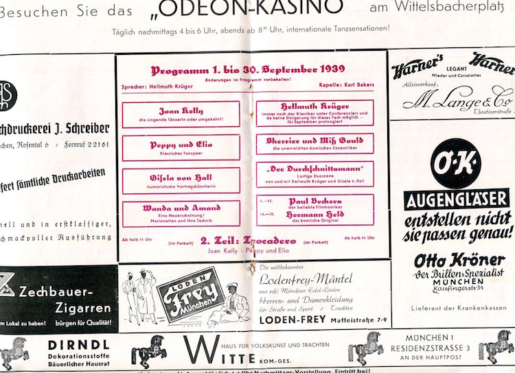 Germany Entertainment Munich Annast Odeon Kasino Program 1939-1 Inside 1