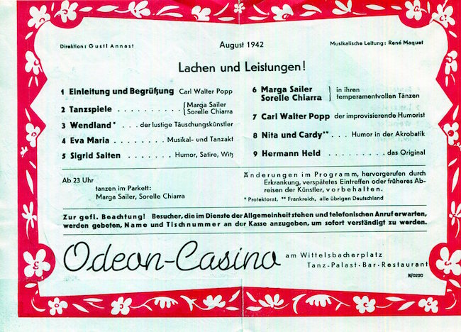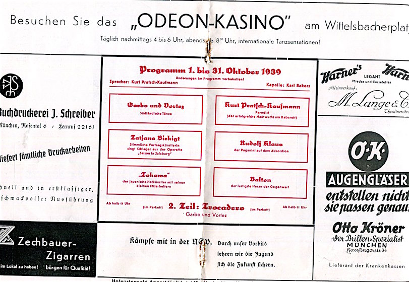 Germany Entertainment Munich Annast Odeon Kasino Program 1939-2 Front