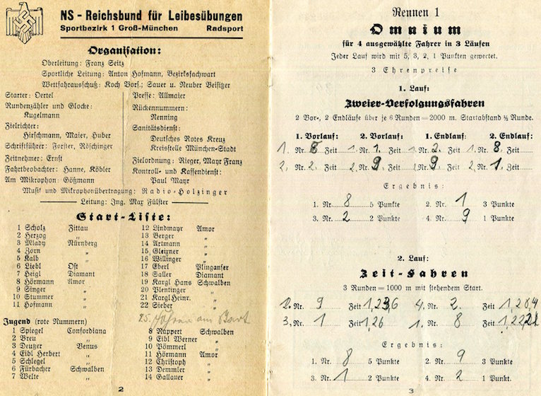 Germany Entertainment Munich Bicycle Race Program 1940 Inside
