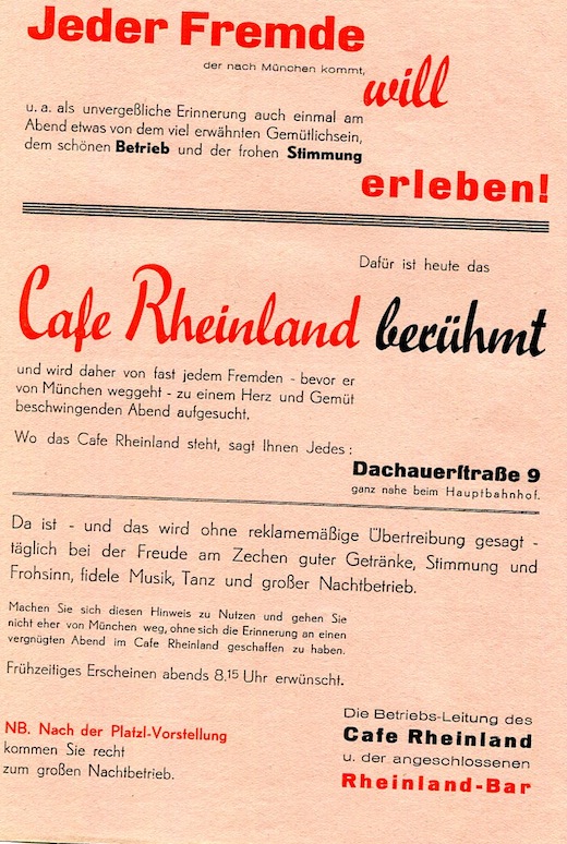 Germany Munich Restaurant Cafe Rheinland Leaflet 1938