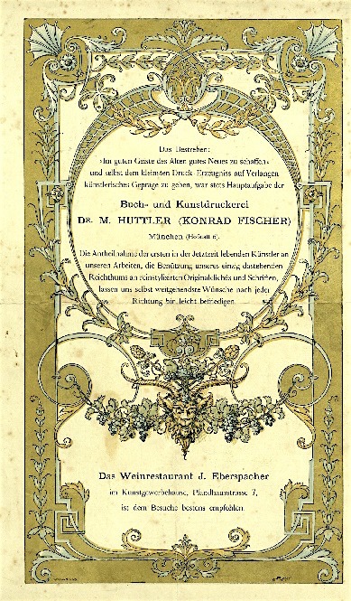 Germany Munich Restaurant Deutsch Nationale Kunstgewerbe Menu 1888 Back