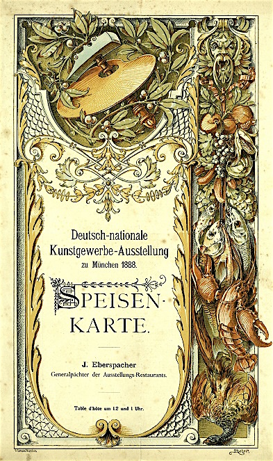 Germany Munich Restaurant Deutsch Nationale Kunstgewerbe Menu 1888 Front