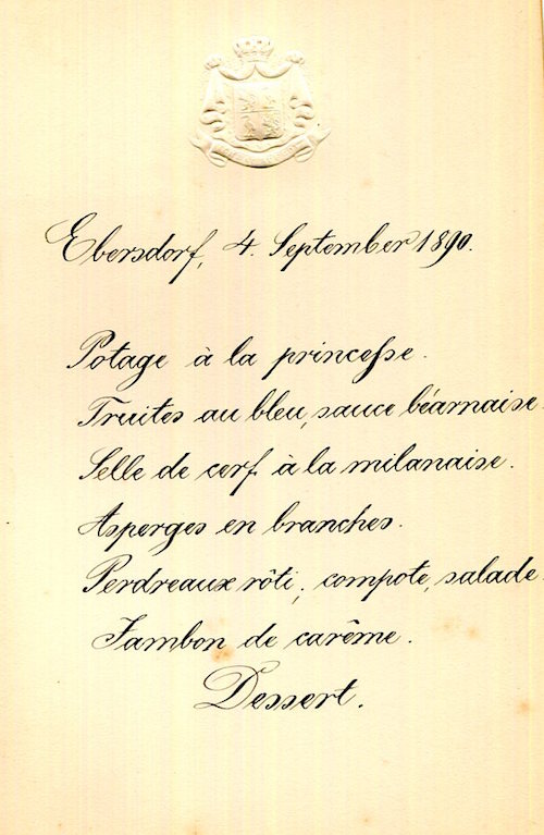 Germany Ebersdorf Royal Special Occasion Menu 1890-1