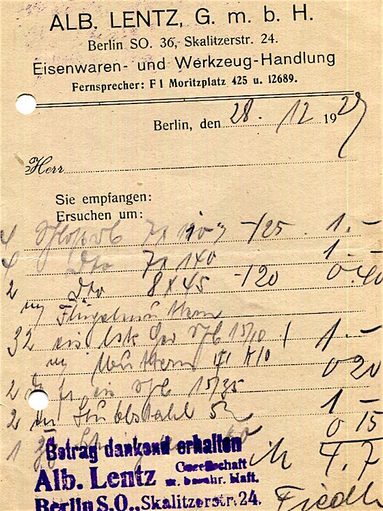 Germany Berlin Commerce ALB Lentz Receipt 1928