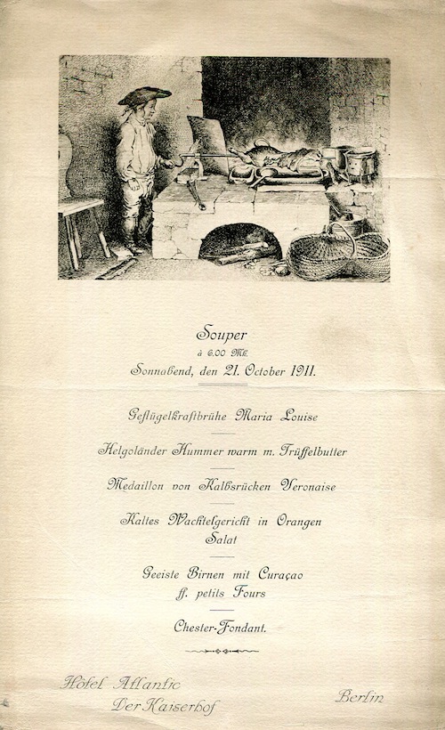Germany Berlin Hotel Atlantic Der Kaiserhof Menu 1911