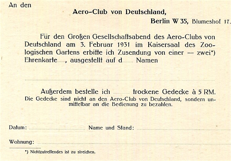 Germany Transport Berlin Aero Club Application Card 1931 Back