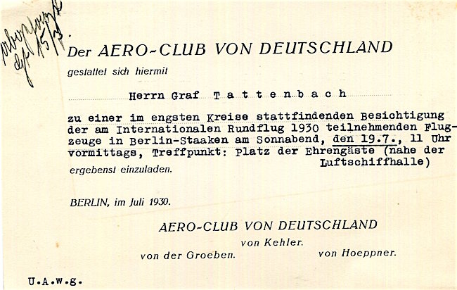 Germany Transport Berlin Aero Club Invitation 1930