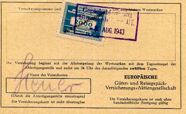 Germany Transport Berlin Anhalter Railroad Station Baggage Card 1943 Back