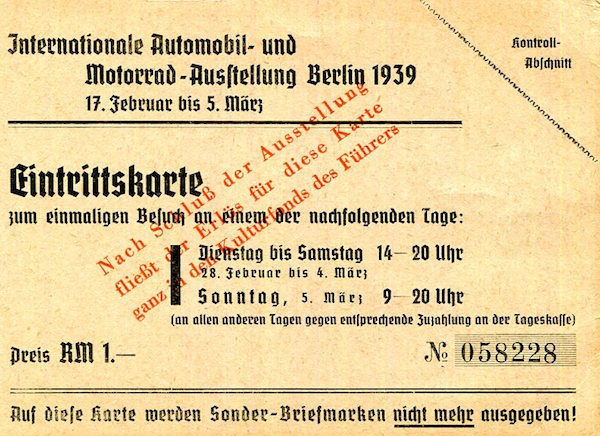 Germany Transport Berlin Auto International Car Show Ticket 1939 Back