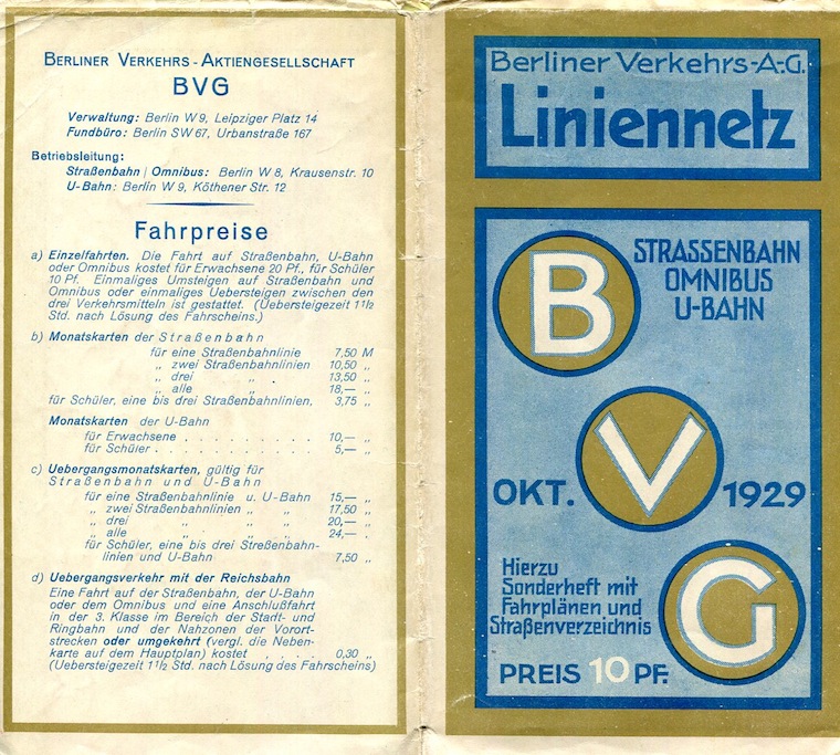 Germany Transport Berlin B.V.G. Brochure 1929 Front