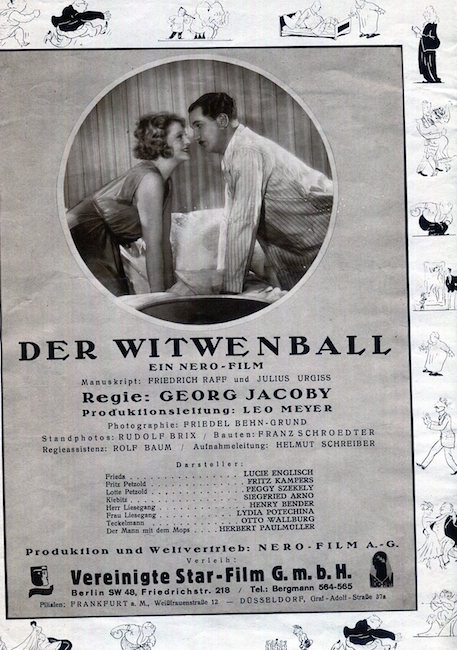 Germany Berlin Cinema Film Kurier Brochure Der Witwenball 1930 Front