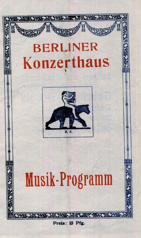 Germany Berlin Entertainment Berlin Concert Hall Music Program 1918 Front