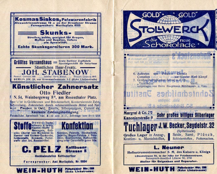Germany Berlin Entertainment Berlin Concert Hall Music Program 1918 Inside 3