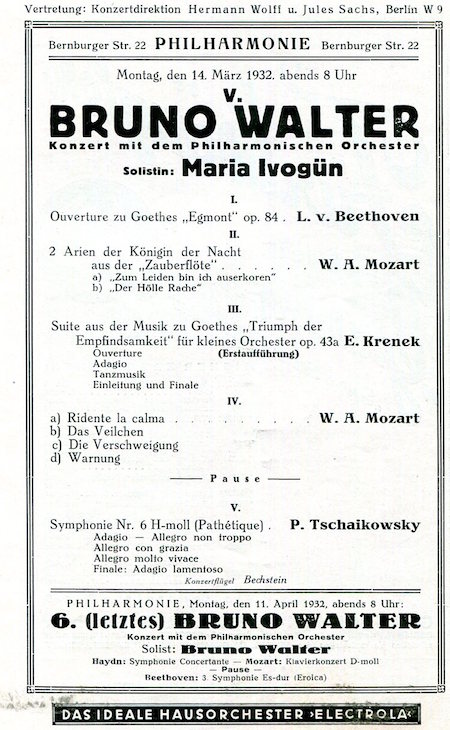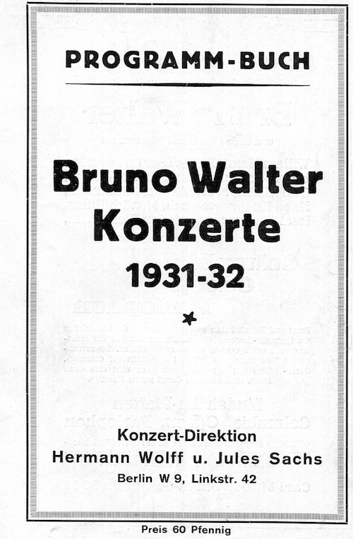Germany Berlin Entertainment Berlin Philharmonic Program Bruno Walter 1931-1932 Front