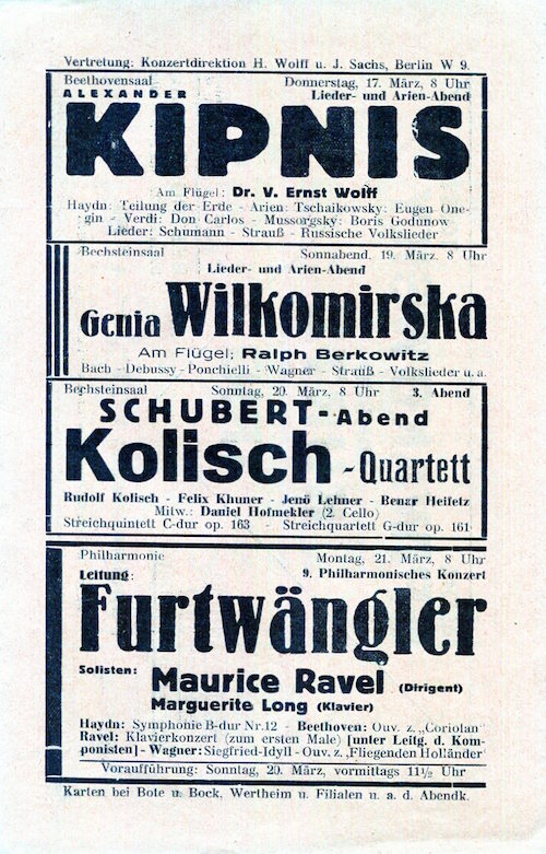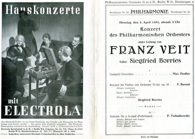 Germany Berlin Entertainment Berlin Philharmonic Program Bruno Walter 1931-1932 Inside 2
